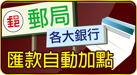 匯款自動加點 玩家選擇使用的銀行(中國信託、第一銀行),在指定的時間內匯款轉帳到指定虛擬帳號內,消費完成將自動把土幣加點至指定遊戲帳號,購卡安全又可以獲得加贈土幣。 |