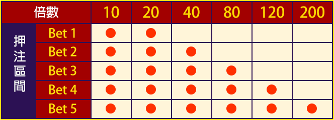 所有的押分都下了 20 押注額成本,請選擇想要的押分。