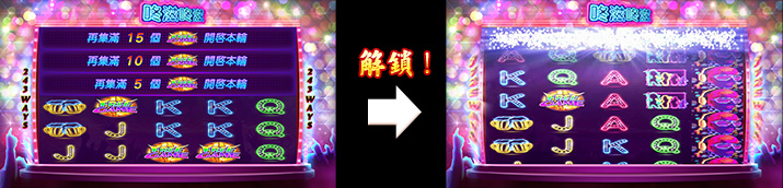 ● 10 個,解鎖第五列滾輪,獲得 3 個免費遊戲( 3125 線)。