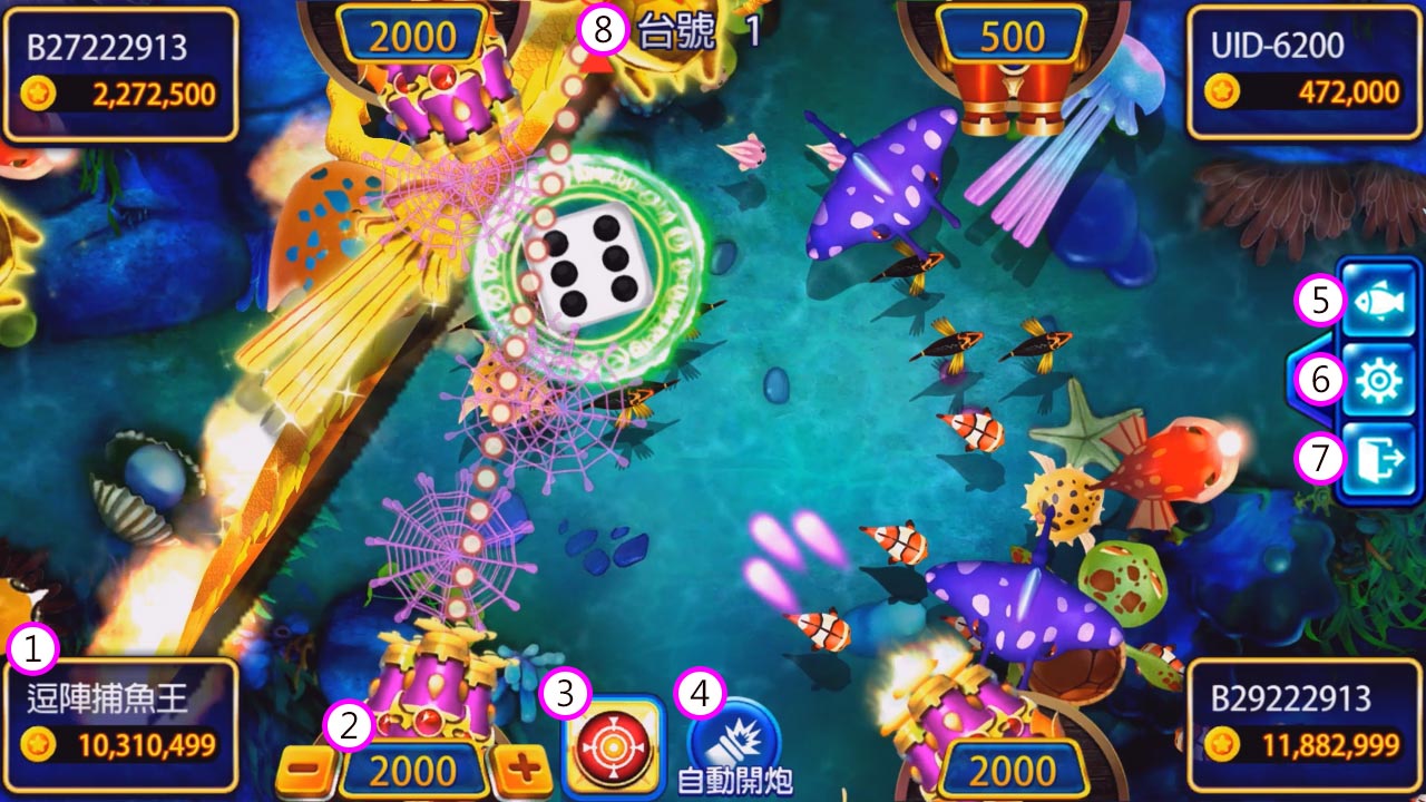 | 5 | 魚種說明 | 開啟魚種功能說明,及魚種賠率表。 |