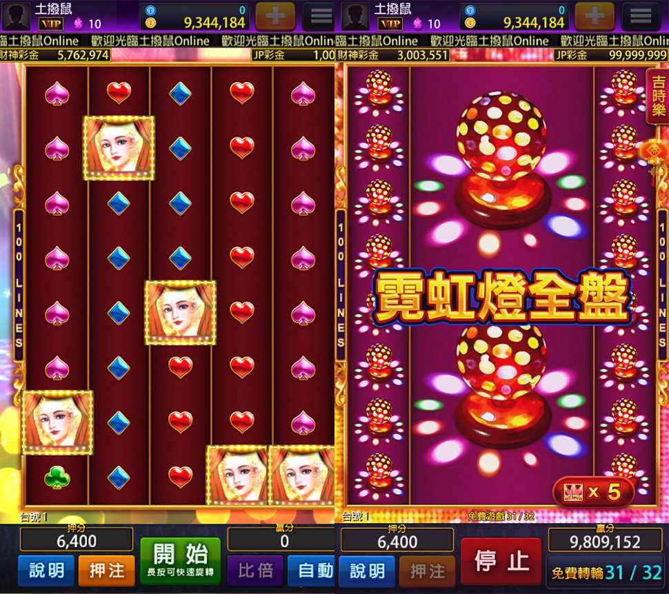 免費遊戲中,第 2、3、4 輪必為整塊相同物件。