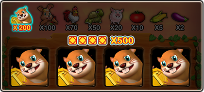例如:中間 4 個相同圖案為土撥鼠時,外圈也是土撥鼠,則贏分 = 總押分 x 200 x 4 + 總押分 x 500。