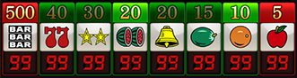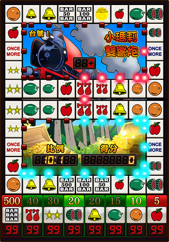 ◆ 遊戲下方押注區,可參考圖案上方的賠率區域。 ◆ 左右兩旁紅色區域為固定賠率,中間六個綠色區段為變動賠率區。 ![]() ◆ 變動賠率區: 【銅鐘】、【檸檬】、【橘子】為一組賠率區,【七】、【星星】、【西瓜】為另一組,押中之燈號為變動賠率區時,將依押注與上方亮起的同組賠率進行計算押分。 Ex.若壓中西瓜燈號,將會與【七】、【星星】、【西瓜】上方亮起的賠率(40、30、20賠率區)進行得分計算。 ◆ 變動賠率燈: 固定兩個賠率燈號為一組,會同時亮起。 1. 40、20賠率 2. 30、15 賠率 3. 20、10 賠率 |