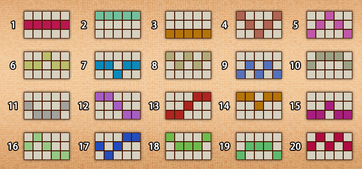20 條對獎線,由左至右單邊對獎,連續出現 3 個以上相同圖案,即可中獎。