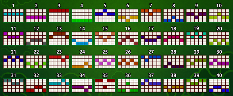 40 條對獎線,由左至右單邊對獎,連續出現 3 個以上相同圖案,即可中獎。