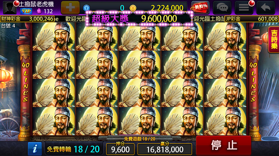 所有的押分都下了 40 線押注額成本,請選擇想要的押分。