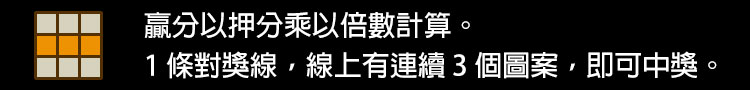 所有的押分都下了 1 線押注額成本,請選擇想要的押分。