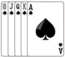 同花大順 | 五張牌為順子 10、J、Q、K、A ,且 5 張牌的花色相同。 若有兩個(以上)玩家持有同花大順,則兩人平分底池。 |