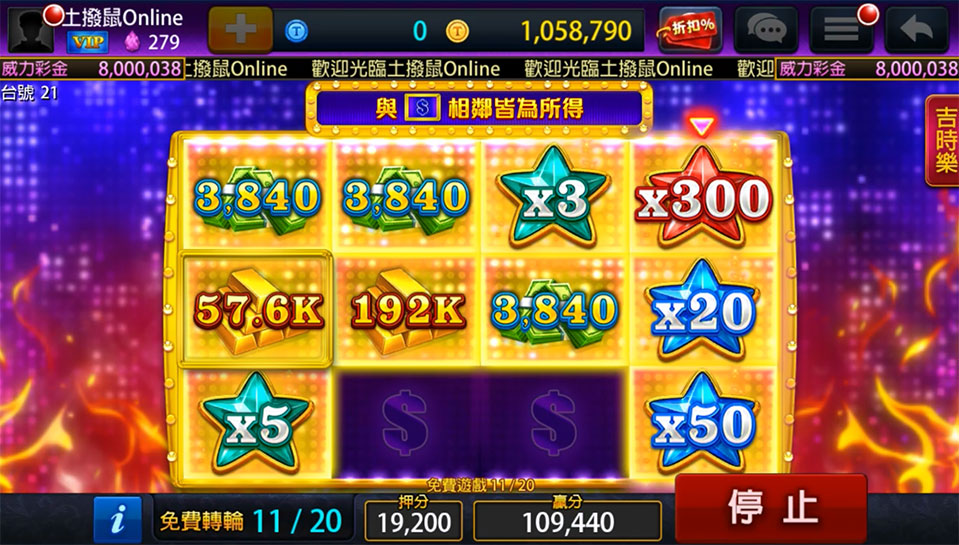 • 贏分以獎圖贏分總和乘上倍數總和計算。