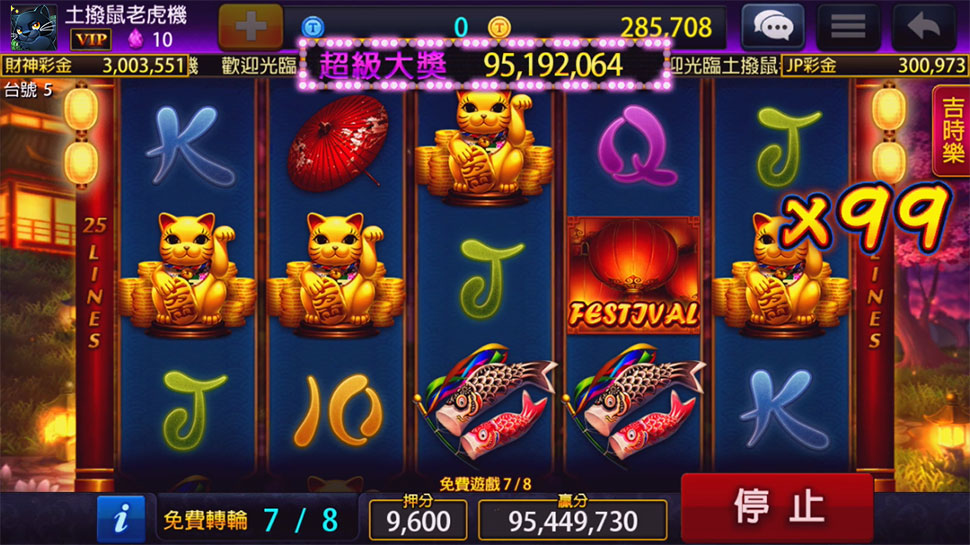 免費遊戲中同時出現 3 個不倒翁,即可再獲得免費遊戲 3 個。