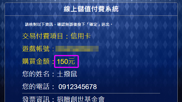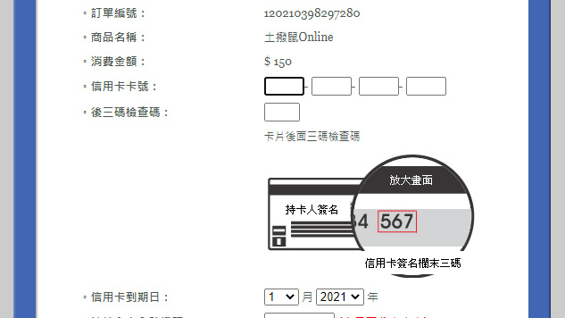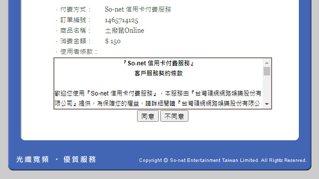 確認商品名稱及消費金額,「同意」信用卡付費條款。