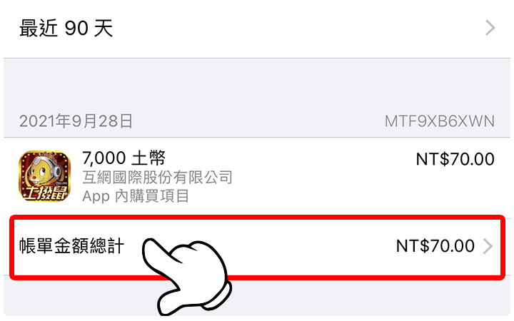 ※當您使用App Store 儲值時發生儲值未到帳之問題,請提供帳單明細截圖「步驟五」的