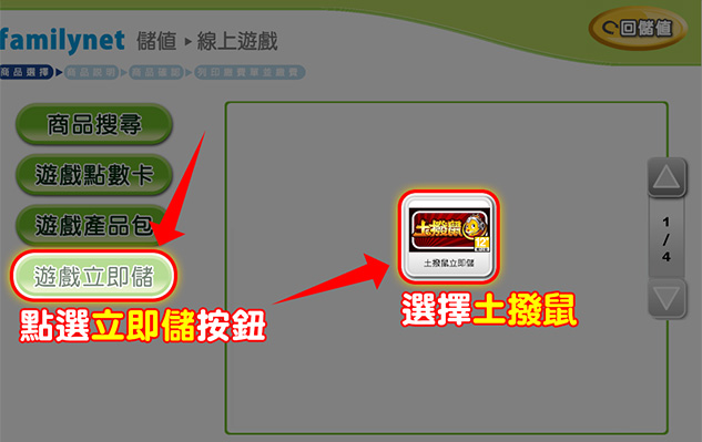 請開啟《土撥鼠Online》手機版遊戲或官網《儲值專區》,點選「全家立即儲」,即可取得
