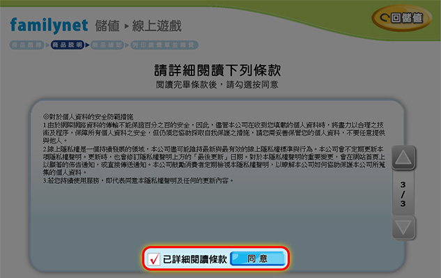 勾選「已詳細閱讀條款」後按同意。