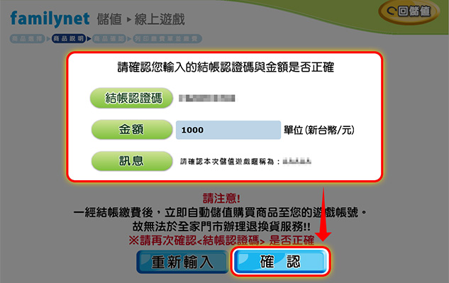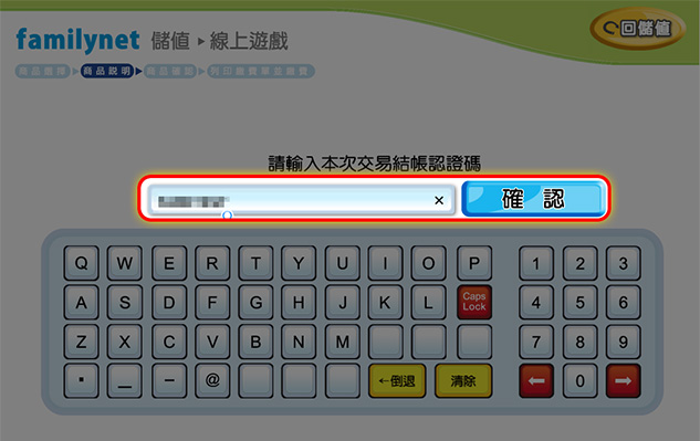 輸入《結帳認證碼》。