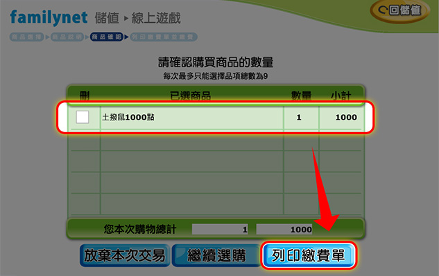 確認商品無誤後【列印繳費單】。