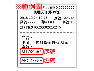 請輸入您所購買的儲值序號和密碼,點數將儲值到您所申請的遊戲帳號。
