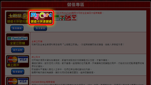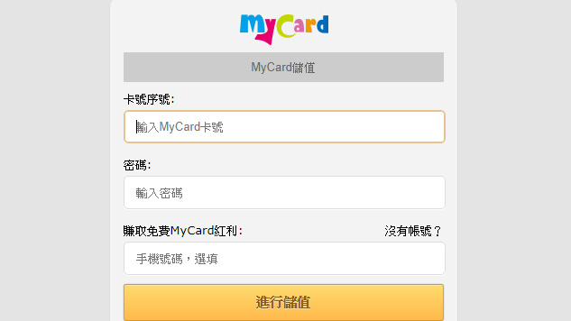 點選「MyCard儲值卡快速儲值」進入帳號密碼輸入頁面。
