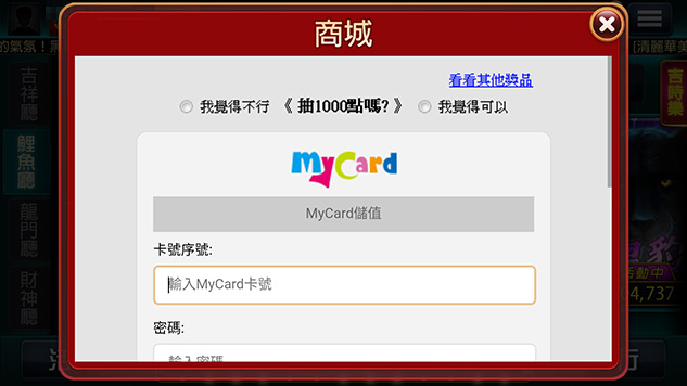 請輸入您所購買的儲值卡卡號及密碼,點數將儲值到您所申請的遊戲帳號。