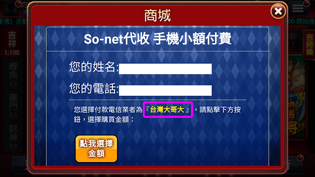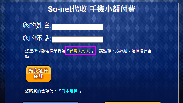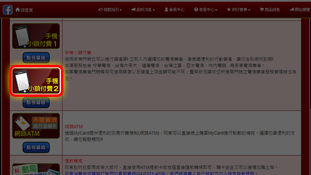 點選「手機小額付費2」圖示。