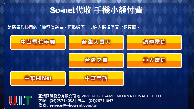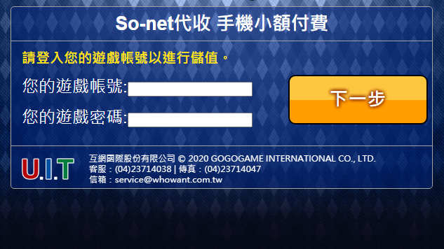 點選「手機小額付費2」進入帳號密碼輸入頁面。