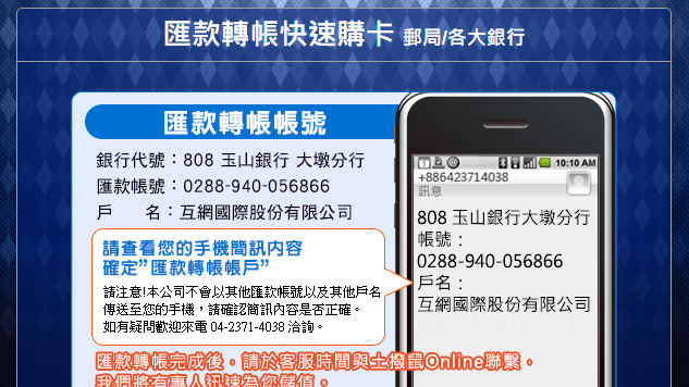 請查看您的手機簡訊內容,確定【匯款轉帳帳號】。