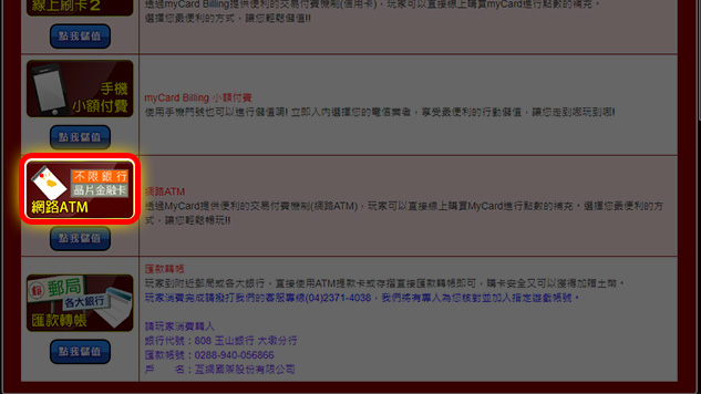 點選「網路ATM」,進入帳號密碼輸入頁面。